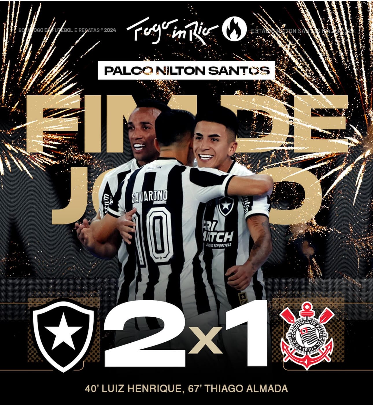 Não seria o mesmo “mamão com açúcar” que foi diante do rubro-negro, portanto. O Botafogo tem tudo melhor do que o Corinthians, de jogadores a entrosamento, passando por esquema tático e posicionamento. Mesmo assim, o time paulista fez um segundo tempo bom. Poderia ainda ter tido melhor sorte se Romero não tivesse cobrado um pênalti nas mãos do goleiro John.
