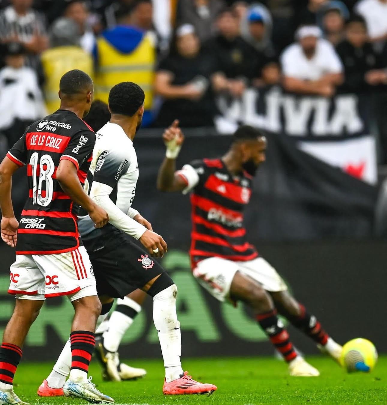 Não entendi nada. A mudança do novato treinador do Flamengo teve apenas um efeito: chamar o Corinthians para dentro de sua defesa. O jogo já era na casa do rival e a mudança reforçou a condição dos donos da casa de pressionar mais.