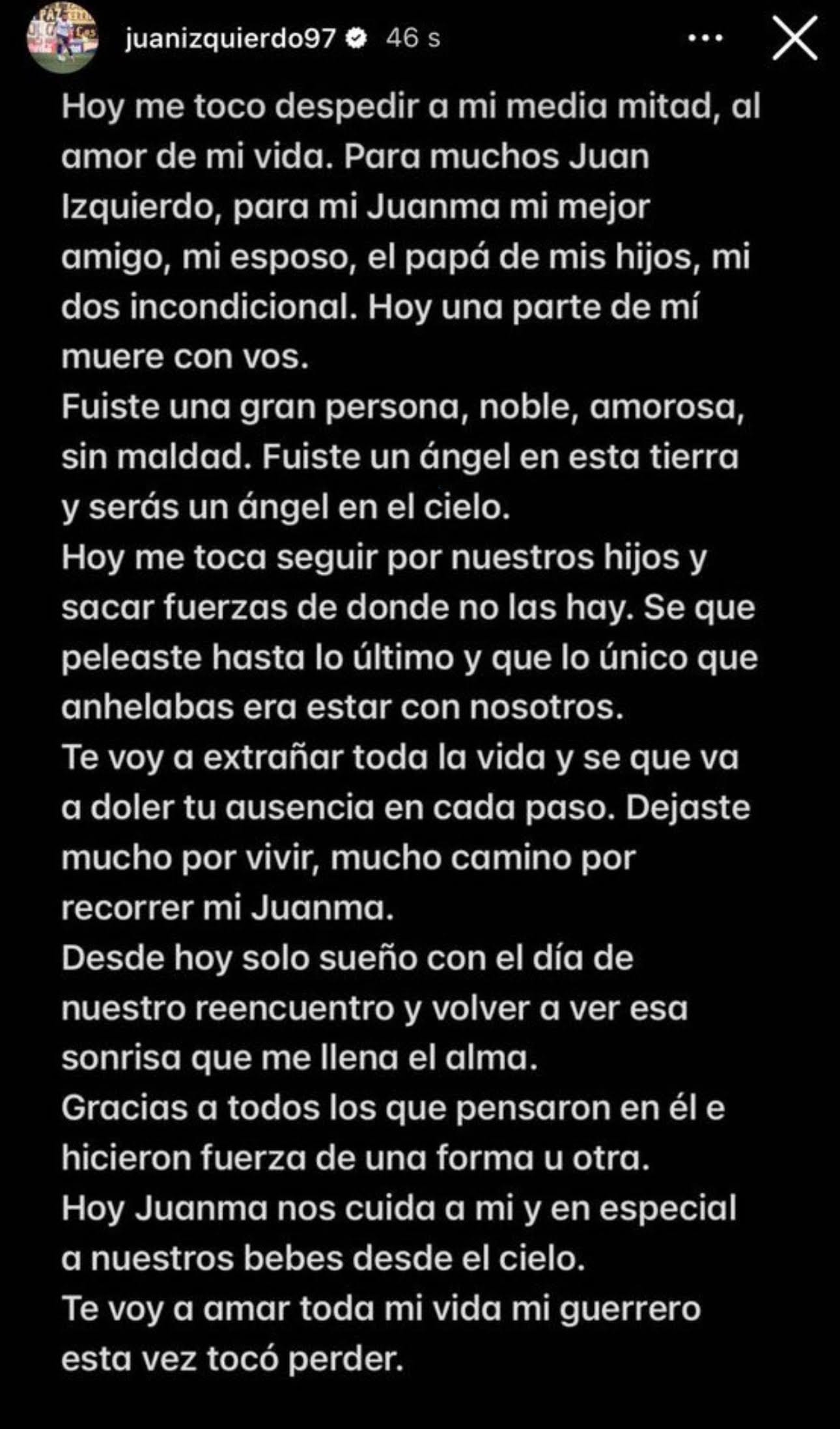 Selena, mulher de Juan Izquierdo, faz um texto bonito após a morte do marido em São Paulo / X Izquierdo