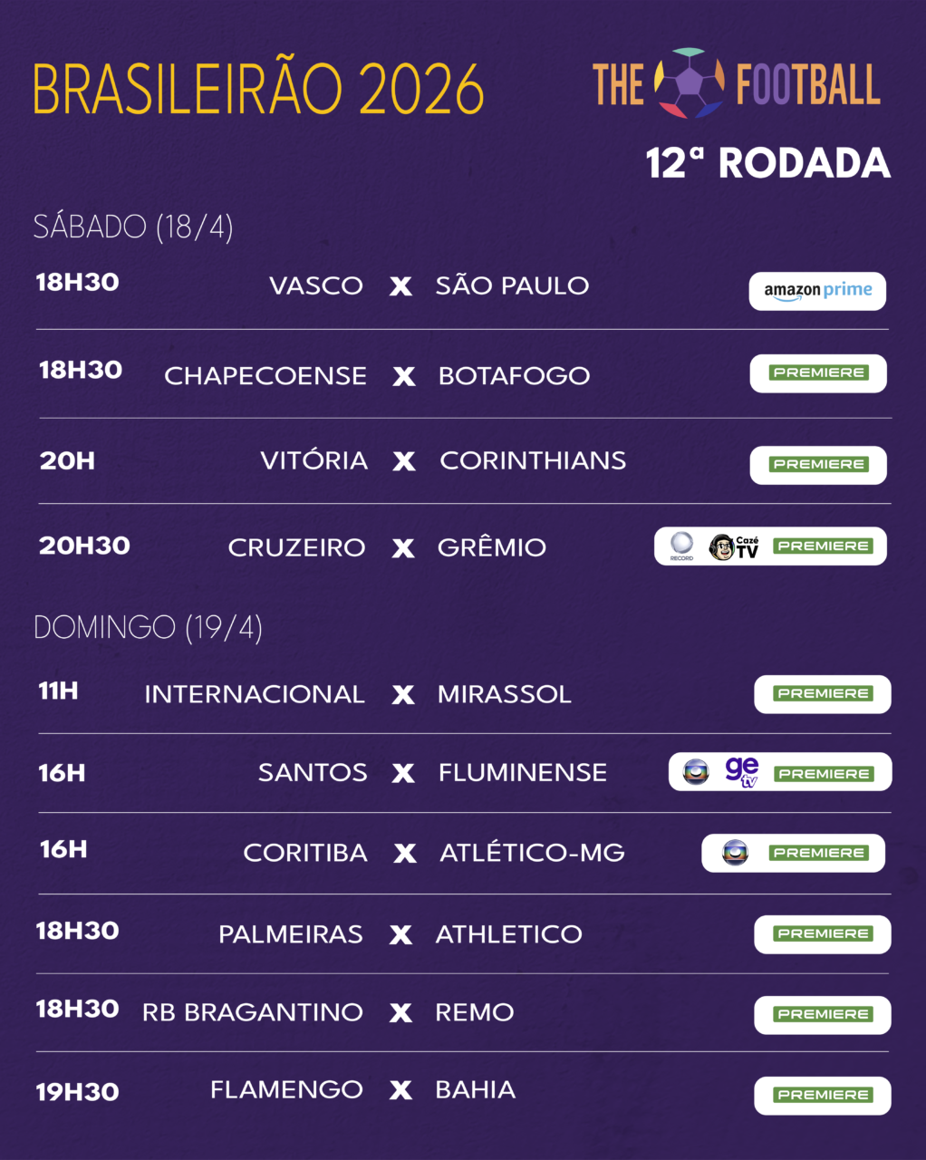 📺⚽ ONDE ASSISTIR AO BRASILEIRÃO | 12ª RODADA TÁ ON!