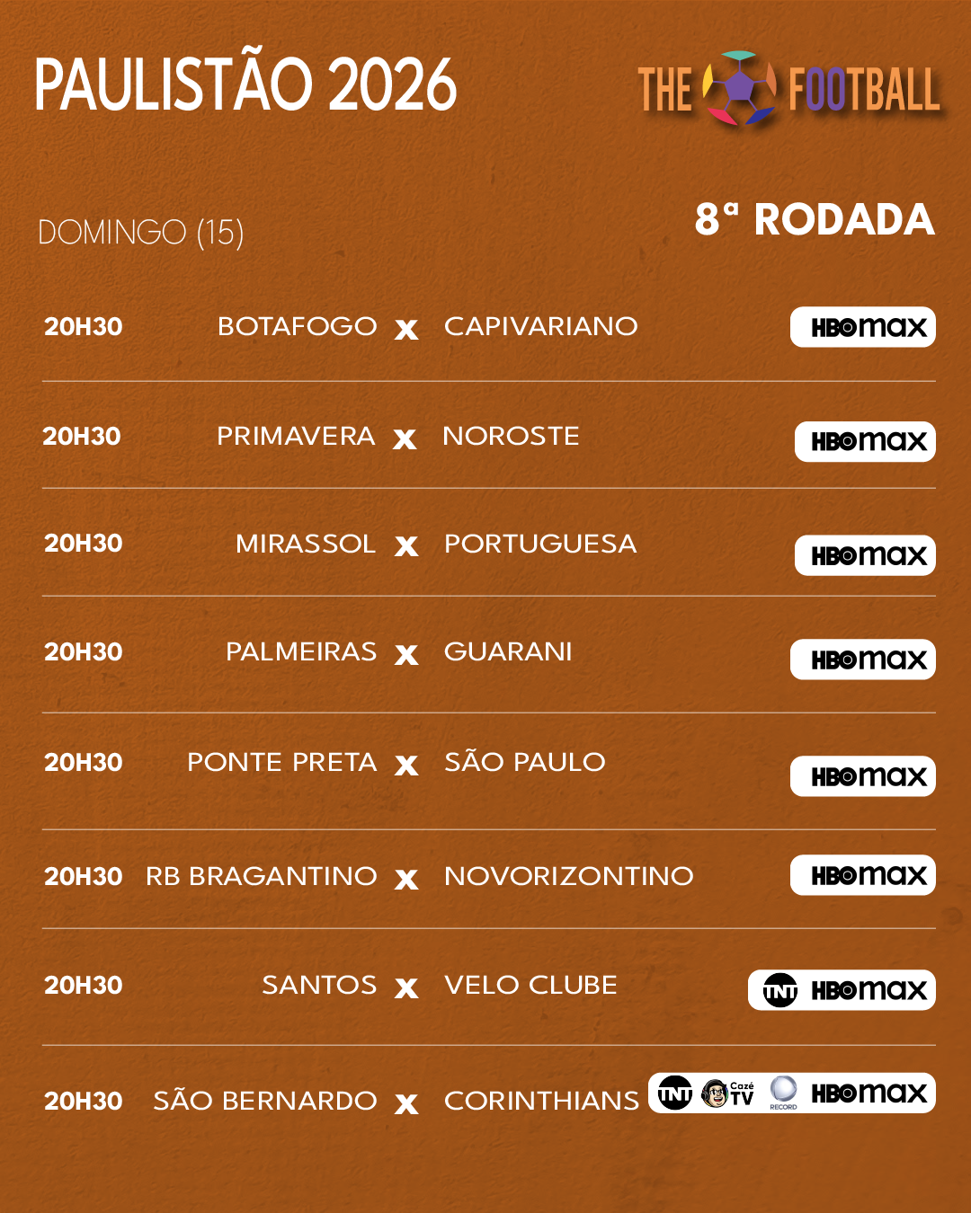 O The Football traz tudo o que você precisa saber sobre a 8ª e última rodada da fase classificatória do Campeonato Paulista 2026. Nesta jornada decisiva, todos os jogos ocorrem ao mesmo tempo e definem os classificados para o mata-mata e quem escapa do rebaixamento. O Estadual também desce dois times. A Ponte Preta foi um deles.