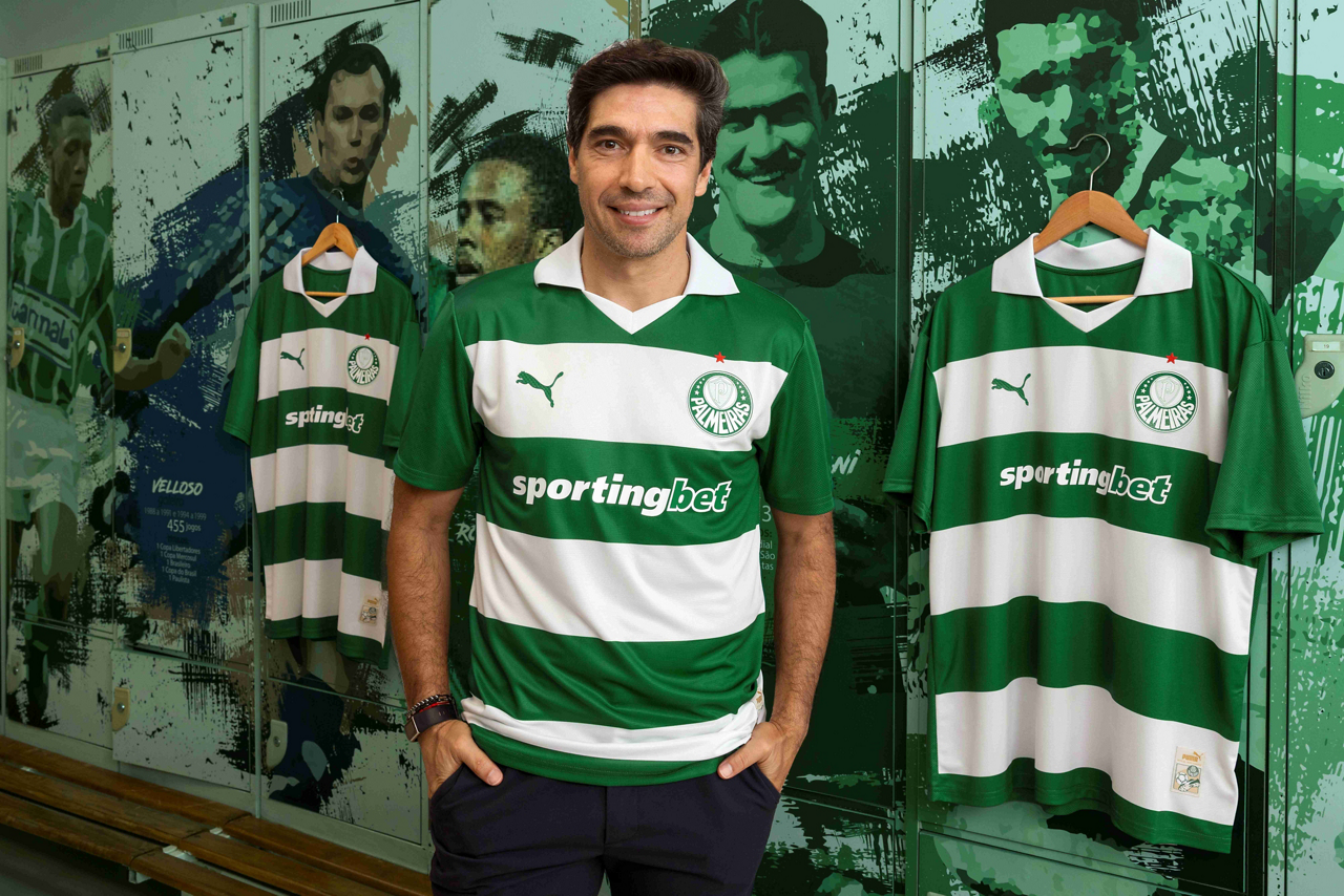O Palmeiras lançou uma camisa listrada. Verde e branco tradicionais. O time já teve outras camisas diferentes, de tonalidades diferentes, para o seu terceiro uniforme. Abel Ferreira e alguns jogadores serviram de garotos-propaganda. O treinador português não fazia isso antes, mas agora está fazendo.