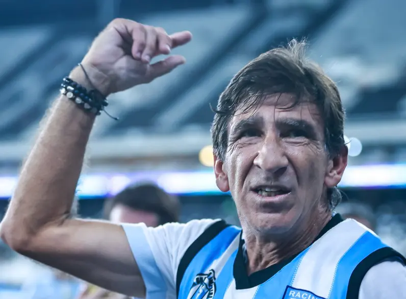 Ídolo do Racing como jogador, o treinador magro e muito querido no clube estava em campo naquele junho de 1988, quando a equipe argentina ganhou a Supercopa Sul-Americana diante do Cruzeiro e deu a volta olímpica no Mineirão. Trinta e seis anos depois, agora como treinador, ele levou o clube argentino ao título da Copa Sul-Americano, novamente enfrentando o Cruzeiro, na final em Assunção, no Paraguai, do ano passado. Portanto, o Racing pode chegar em duas finais seguidas de competições da Conmebol.