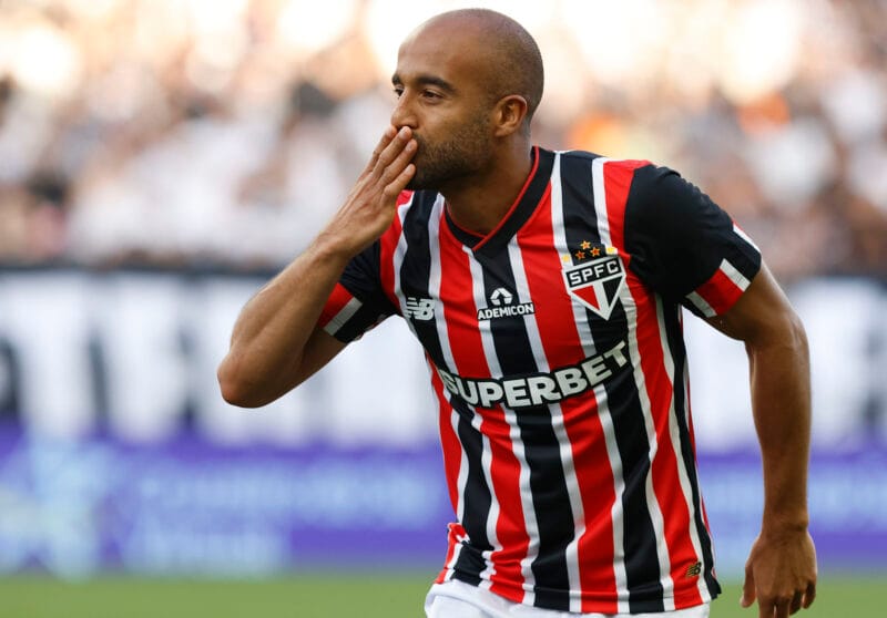 Lucas Moura fez o segundo gol do São Paulo diante do Bragantino: time está embalado no Paulistão/ SPFC