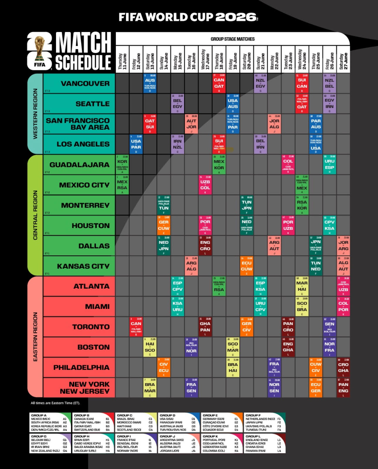 Um fantasma que rondava o planejamento da seleção brasileira, a possibilidade de atuar sob o sol e o forte calor da Costa Leste dos Estados Unidos, durante os meses de junho, foi descartado. Por causa do fuso horário em relação aos países da Europa, as partidas realizadas nesta região serão durante o período noturno. O jogo de estreia contra o Marrocos, dia 13 de junho, no MetLife Stadium, nos arredores de Nova York, começará às 18 horas, no horário local. Na segunda rodada, o confronto contra o Haiti, na Filadélfia, iniciará às 9 da noite, do dia 19 de junho.