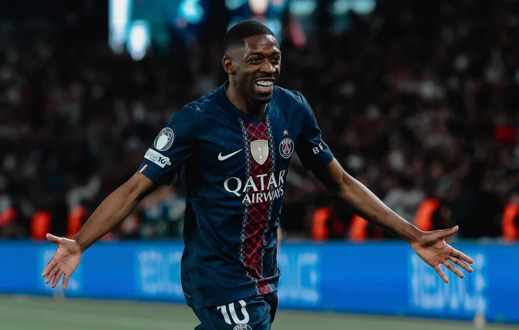 Dembélé comemora gol do PSG sobre o Bayern. A volta desta semifinal está marcado para próxima quarta / PSG