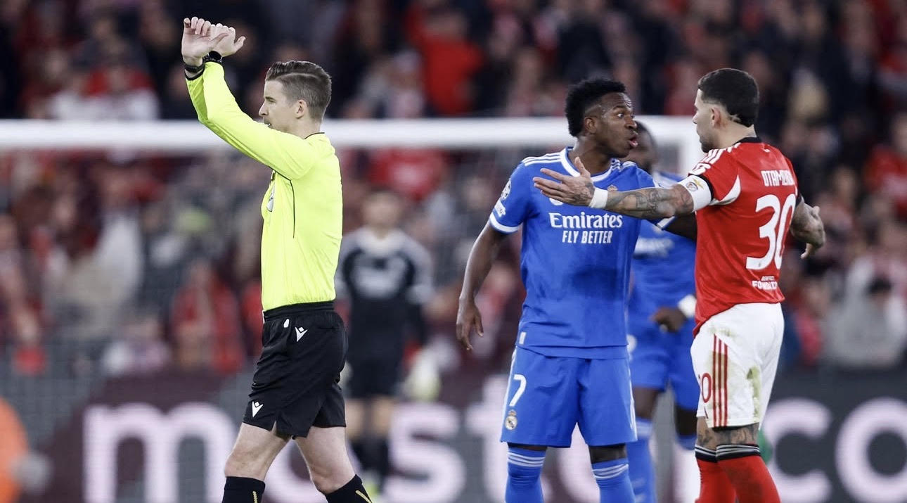 Ao seu estilo irreverente, Vini foi comemorar dançando junto à uma das bandeiras de escanteio diante da torcida benfiquista. Logo o clima de festa acabou. A senha para isso foi quando o árbitro francês François Letexier cruzou os braços em forma de “X”, sinalizando que poderia ter havido insultos racistas em campo. Segundo Vini Jr, logo após o seu gol, ele foi xingado pelo argentino Gianluca Prestianni, do Benfica.
