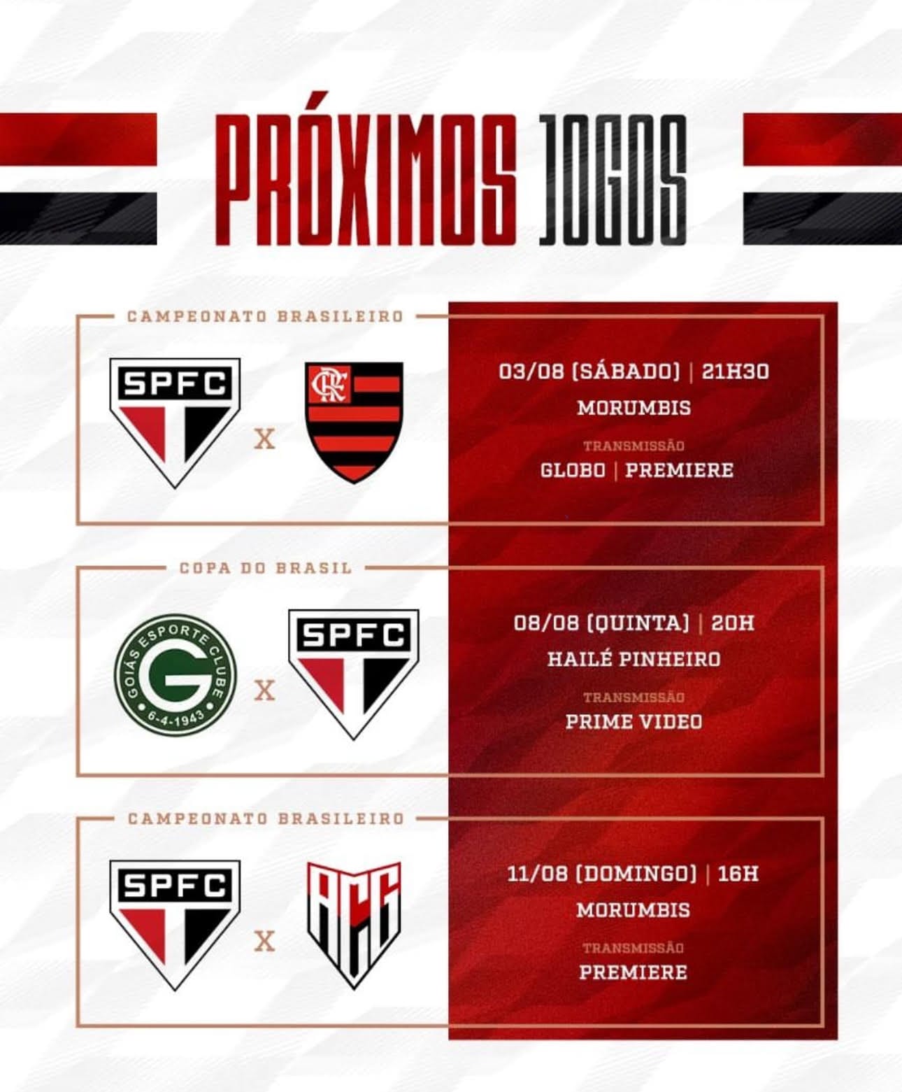 O Flamengo, de Tite, lidera a competição, com 40 pontos. O São Paulo tem 32. Precisa da vitória para se juntar aos primeiros colocados. Se ganhar, sobe sua conta e não deixa o rival abrir mais vantagem. De quebra, ajuda outros concorrentes, como Botafogo, Palmeiras, Fortaleza e Cruzeiro, todos acima dele.